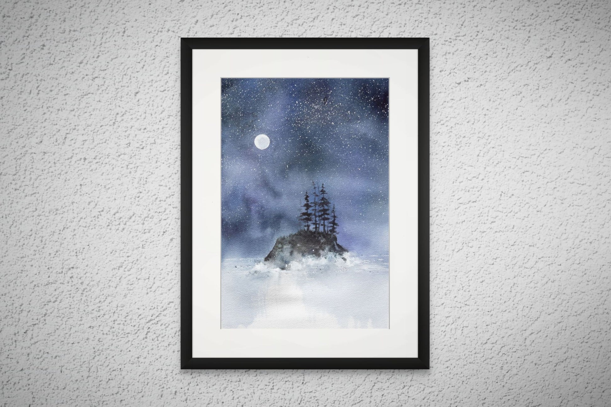 Moonlit Sentinel - Original Watercolor by K.L. Rockwell (Matted 24" x 18")