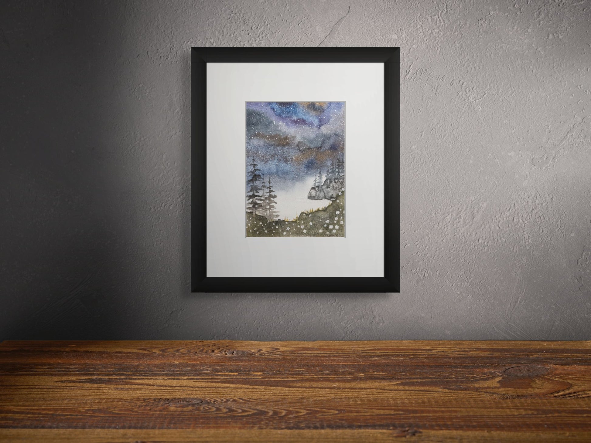 Night Meadow Above Cove - Original Watercolor by K.L. Rockwell (Matted 8" x 10")
