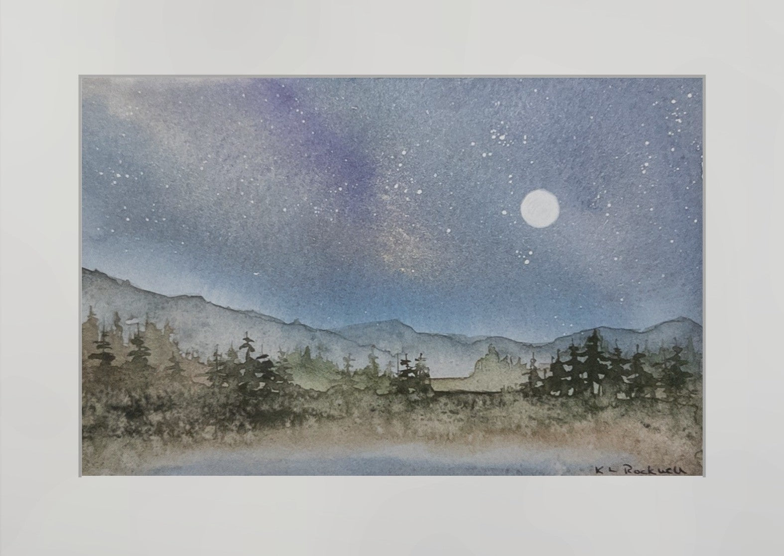 Starlit Timberline Quiet: Original Watercolor by K.L. Rockwell (Matted 9" x 12")